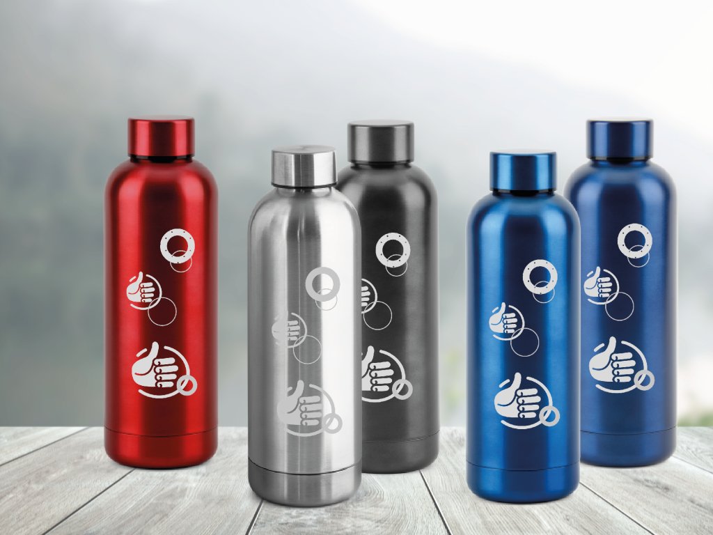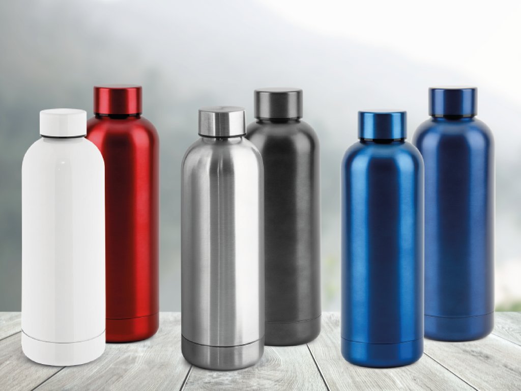 Láhev z nerezové oceli (90% recyklace) s nerezovým uzávěrem. Kovové provedení (kromě bílé barvy) a vakuově izolovaná dvojitá stěna. Kapacita až 550 ml. Dodáváno v dárkové krabičce z kraftového papíru. Vhodné pro studené i teplé nápoje.