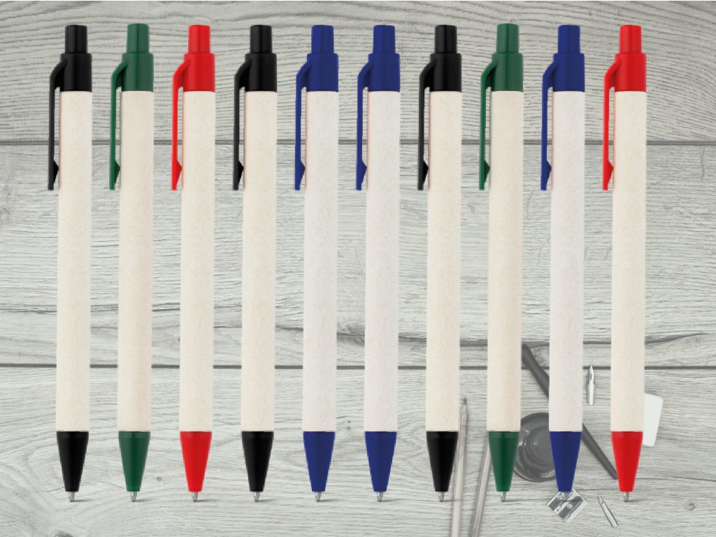 Kuličkové pero z recyklovaných mléčných kartonů. Maximální velikost potisku je vpředu 55 x 6 mm. Barevné komponenty jsou vyrobeny ze 100% recyklovaného ABS plastu (rABS). Rozměry pera: ø10 × 139 mm. Tamponový tisk je možný až ve 4 barvách – cena na vyžádání.